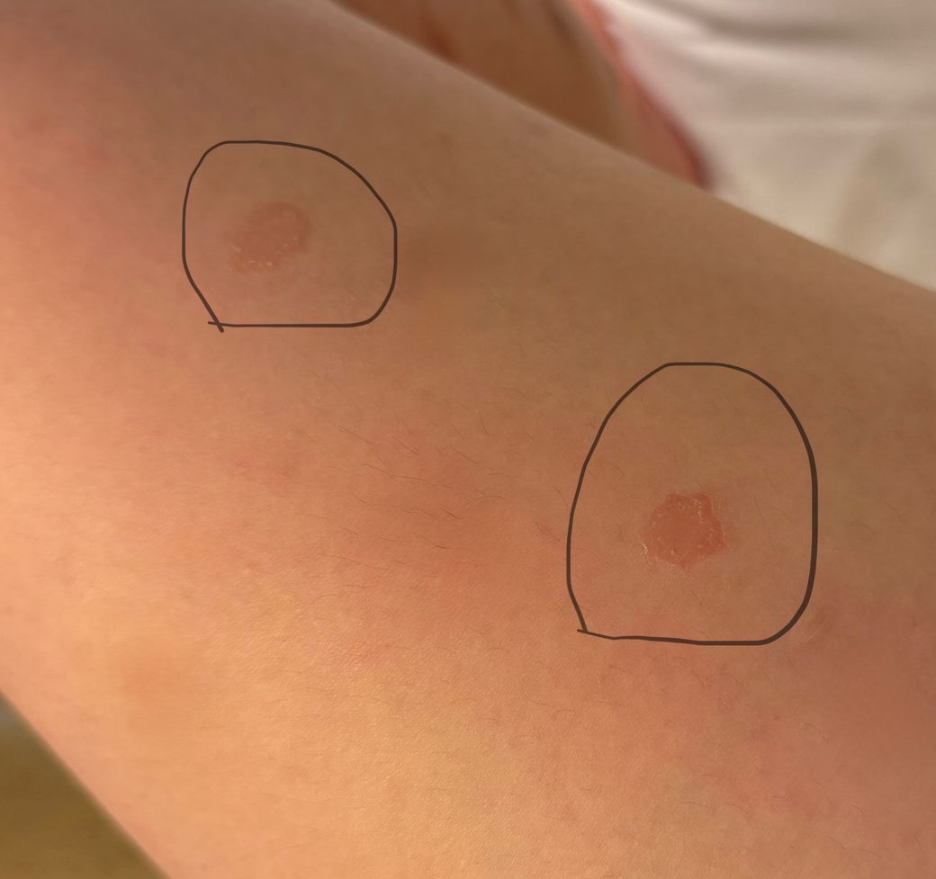 뭔가 까진듯한 상처처럼 보이기도 하고 붉은 반점처럼 보이기도 하는데 (사진으론 잘 안보여요) 이는 굉장히 비특이적 증상으로 가능한 원인이 너무나도 많습니다.