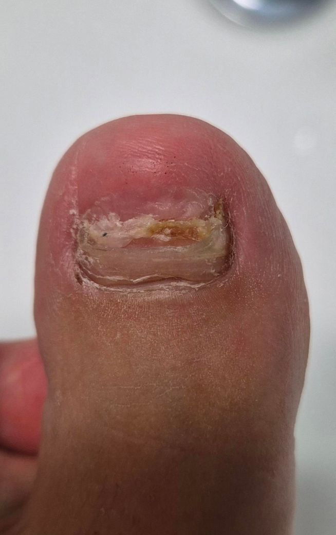 발톱이 외상으로 들뜨면서 일부를 스스로 잘라 내셨고 뿌리는 남겨둔 상태로 지금은 발톱 밑에 빈 공간이 생긴 상태라면 여러가지 가능성이 존재합니다.