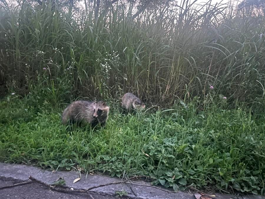 또한 너구리는 특히 털이 두껍기 때문에 더위에 취약한 편인데, 물에 들어가 몸을 식히는 방식으로 체온을 조절합니다. 그래서 물을 가까이 하는 편이죠.