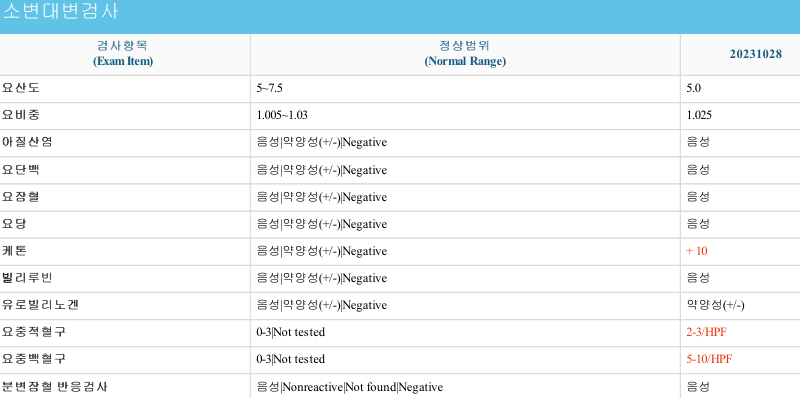 소변 검사 결과는 요로 감염 관련 증상이 있다면
