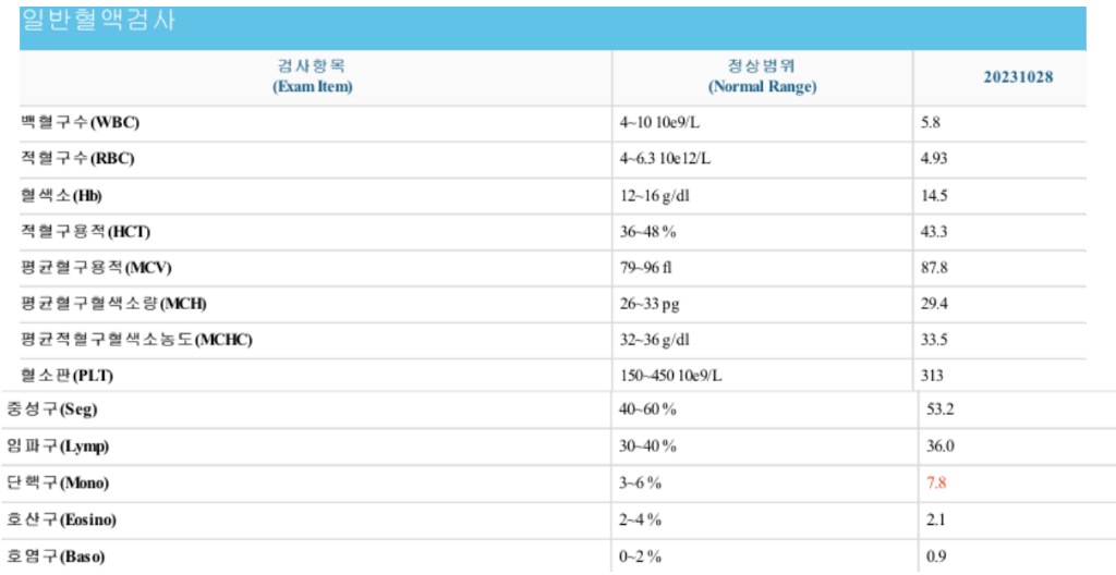 혈액 검사 결과는 별문제 없어 보이는데
