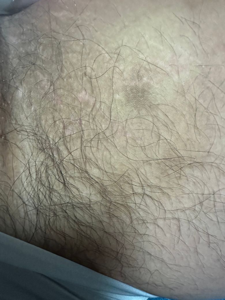 올려주신 사진으로 미루어 색소 침착을 동반한 피부 질환의 가능성이 생각되므로 피부과 진료를 권합니다.