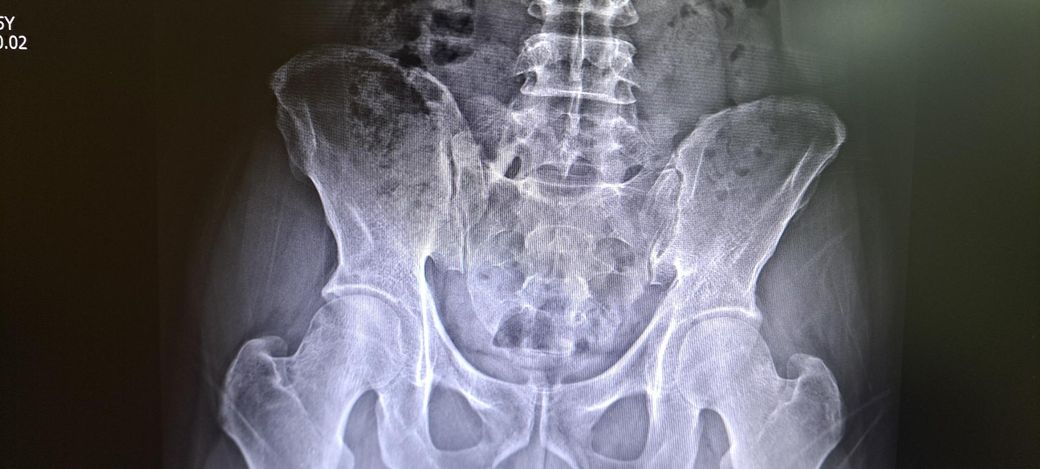 사진상으로 골반 좌우 비대칭은 약간 의심되지만, 단순 X-ray만으로 "심각한 틀어짐"이라 단정하긴 어렵습니다.