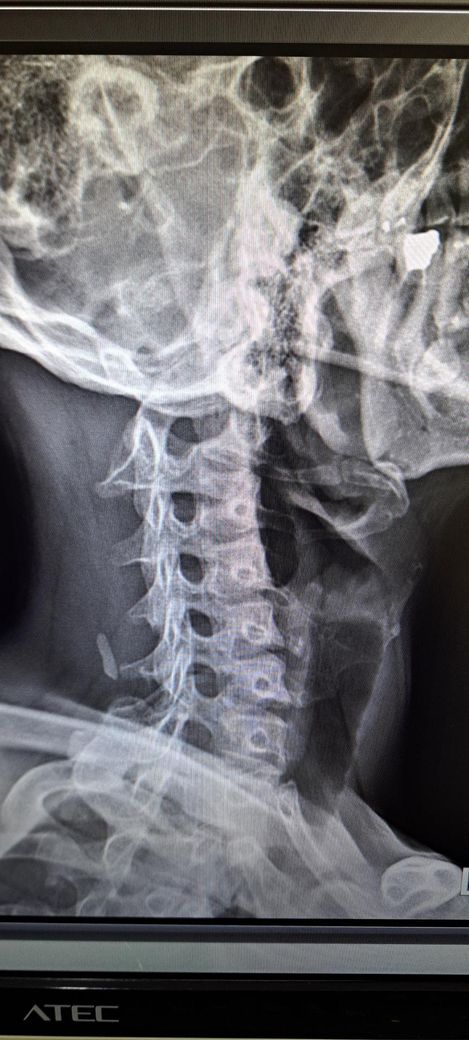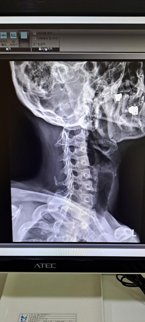 보여주신 X-ray를 보면 우선 첫번째 사진에서 경추전만이 무너져서 일자목을 넘어 역 C자가 만들어진걸 볼 수 있습니다. 평소 고개를 앞으로 굽히지 않는 경추전만 자세 교정이 필요하겠으며 아래 영상 보시면서 자세를 교정해보시기 바랍니다. 아래 영상은 디스크에 대한 영상이지만 결국 교정해야할 자세는 같습니다.