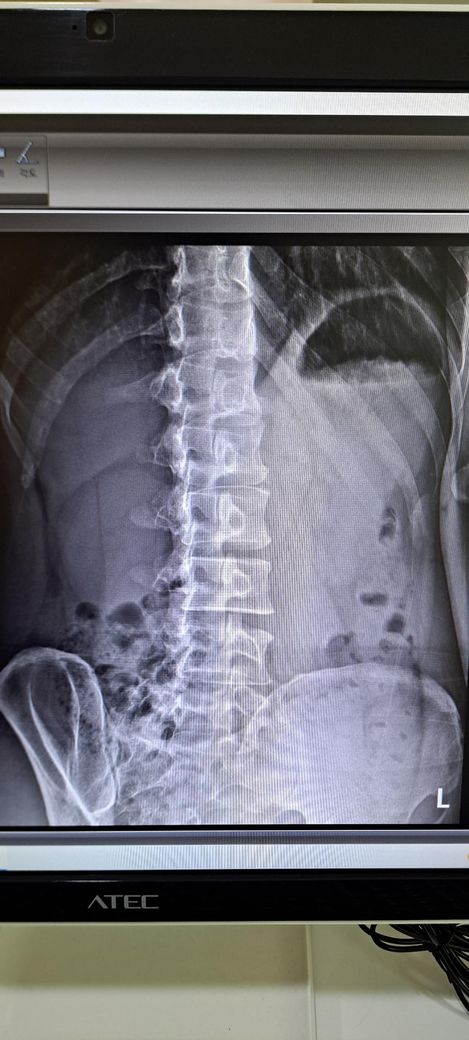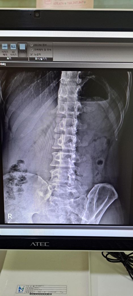x-ray 결과로 보아서는 경추C자 곡선이 반대로 되어 있어 일자목이 심해 보이며 골반 틀어짐과 척추측만증이 있는 것으로 보입니다.