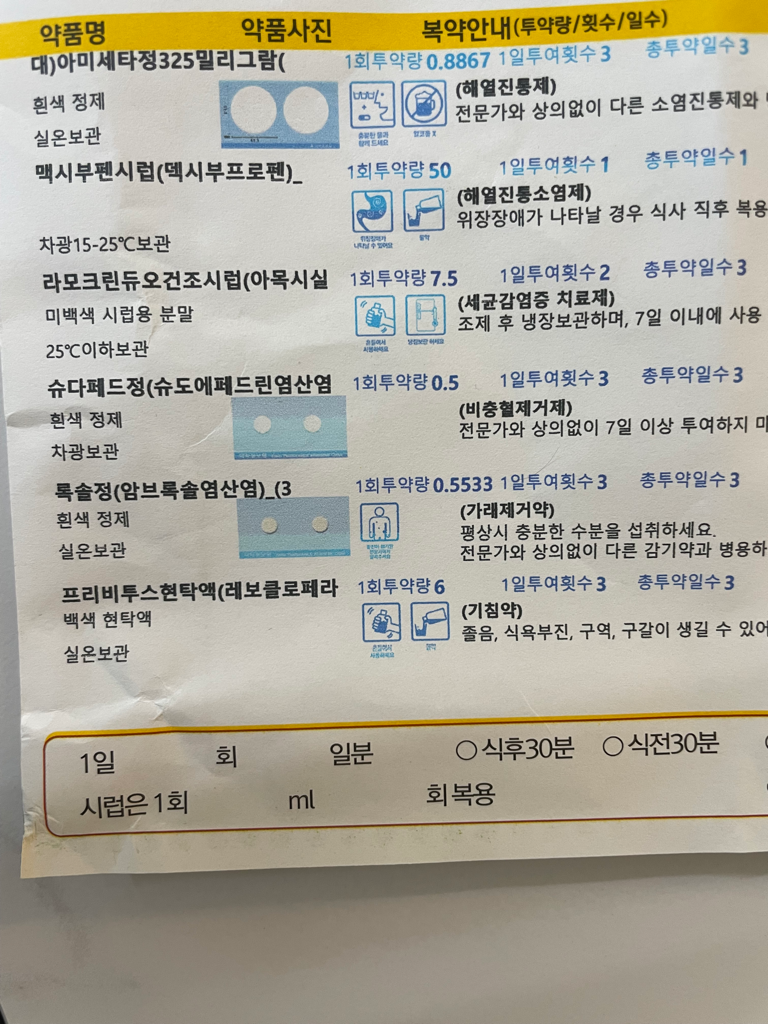 아미세타정, 맥시부펜시럽은 먹이지 않아도되는데 다른 약들은 남는것 없이 다 먹이셔야해요.