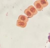 안녕하세요. 박창민 수의사입니다. 감수분열 2기 같아 보입니다. 올려주신 이미지에서는 여러 개의 세포가 각각 염색분체를 양극으로 분리하는 모습을 보입니다. 감사합니다.