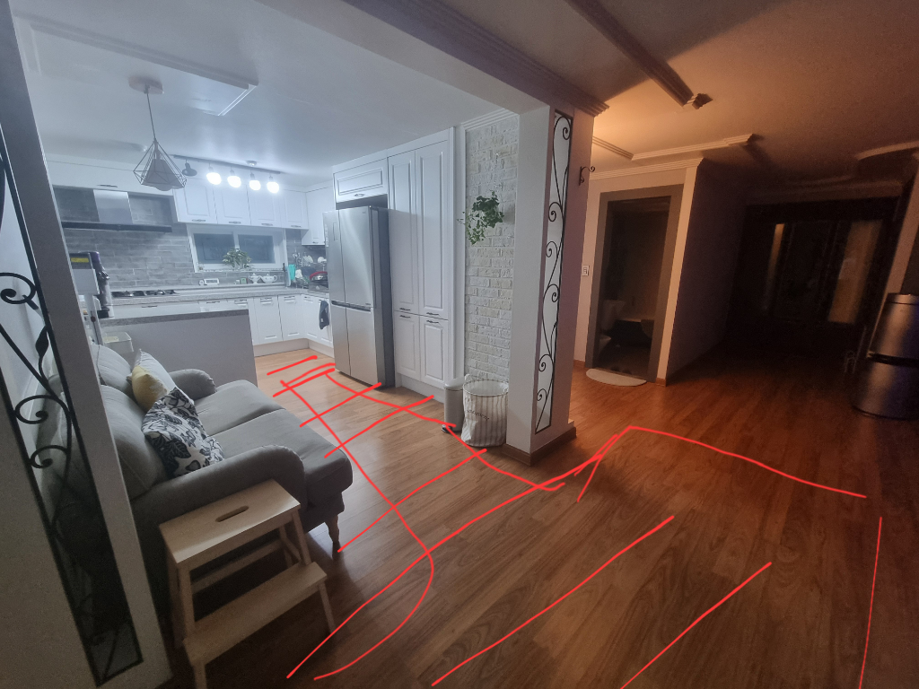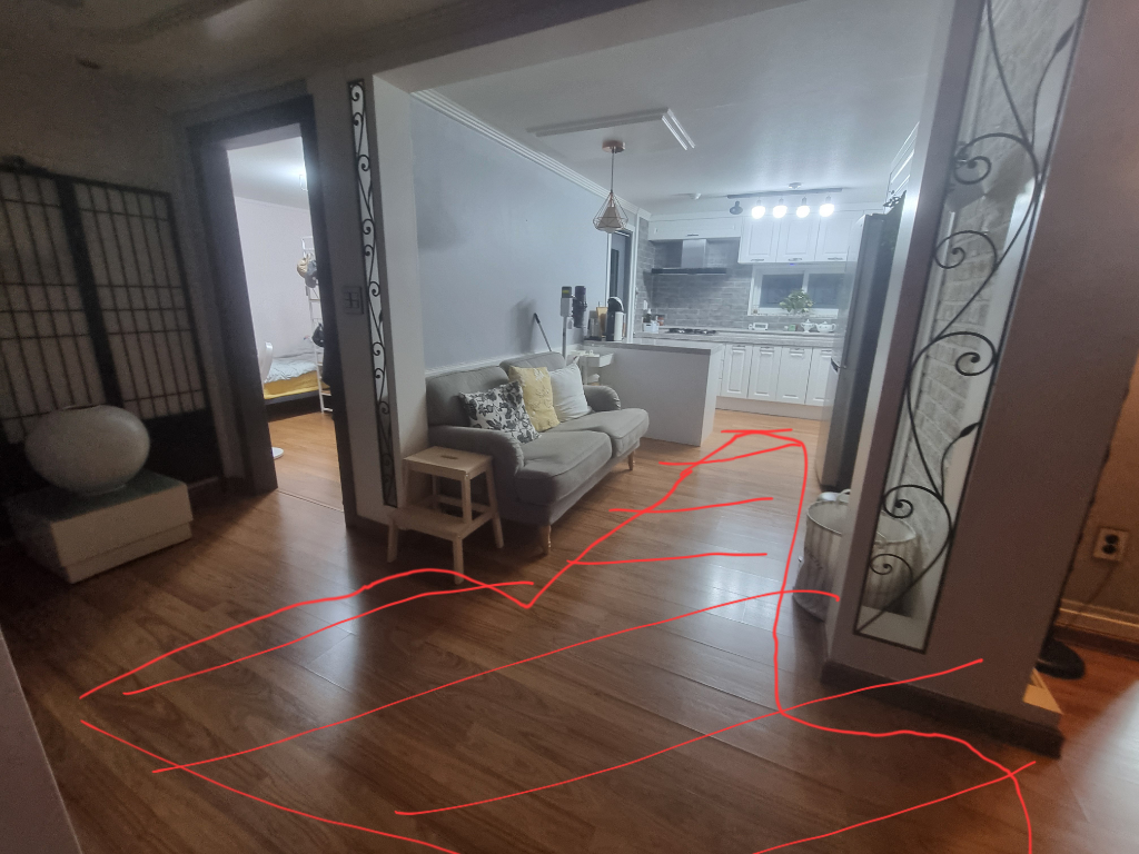 빨간색선 네모 있고 금친곳에 강아지가 겁먹어서 못 옵니다.