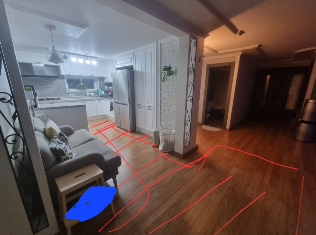 그리고 검은색 동그라미에 강아지 물그릇이 있던 자리입니다