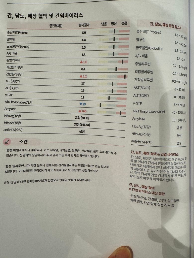 총빌리루빈,간접빌리루빈아밀라제 치가 높다는데 췌장 쪽 문제가 있는건가요? 배가 아프거나 하지는 않은데요..작년에도 비슷했습니다
