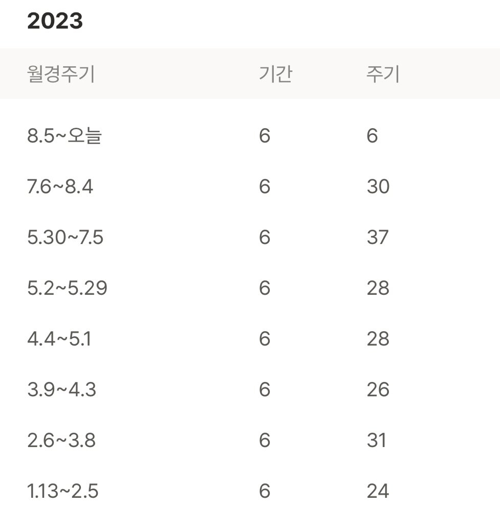 생리주기는 불규칙적인 편이라고 볼 수 있겠습니다.
