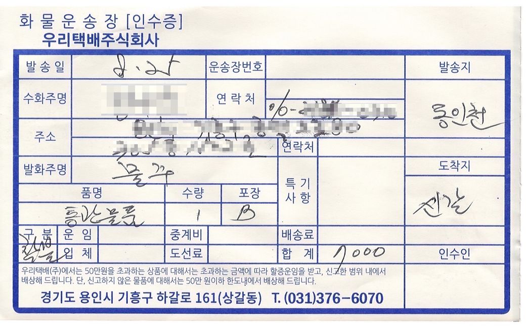 인수증을 영수증으로 주시는데