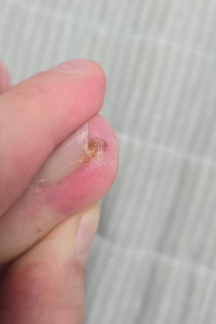 발톱이 피부를 파고들면서 상처가 생기고 감염이 생긴듯합니다.