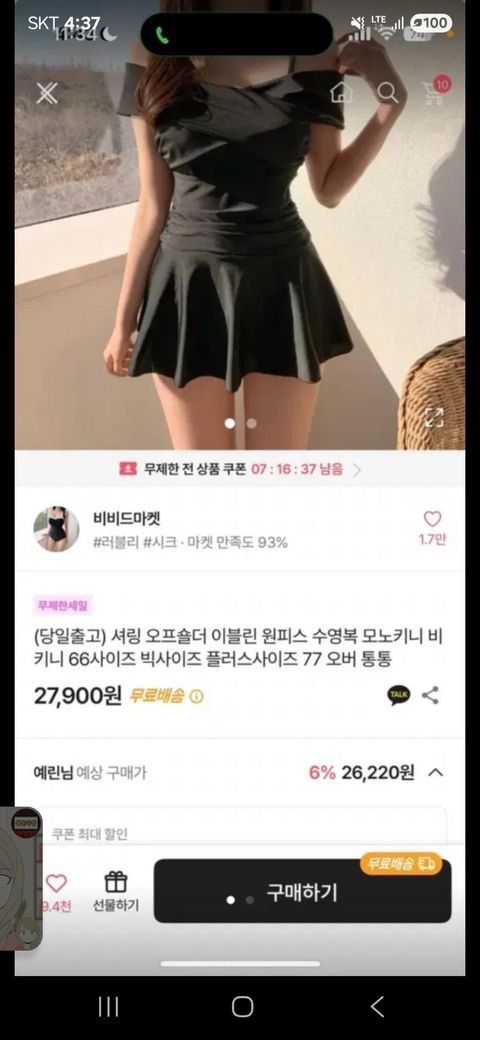 말씀하신 수영복 사이즈는 가슴 부분에서 작을 가능성이 매우 높습니다. 75F 컵은 가슴 둘레가 상당히 있는 편인데, 가슴 단면 34cm는 일반적인 44~55 사이즈(S~M) 수영복의 기준치에 해당하여 가슴을 충분히 감싸주기 어려울 수 있어보입니다.