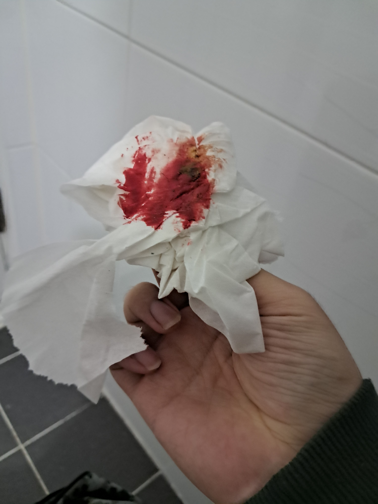 검은색이 아닌 붉은 색인 점, 그리고 작년 10월 내시경 검사에서 이상이 없었음을 감안하였을 때 정황 상 치핵이 나빠지면서 출혈이 악화되었을 가능성이 높아 보입니다.