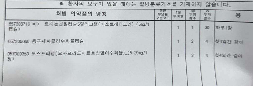 피부과약 트레논연질캡슐5mg 하루먹고 중단했어요