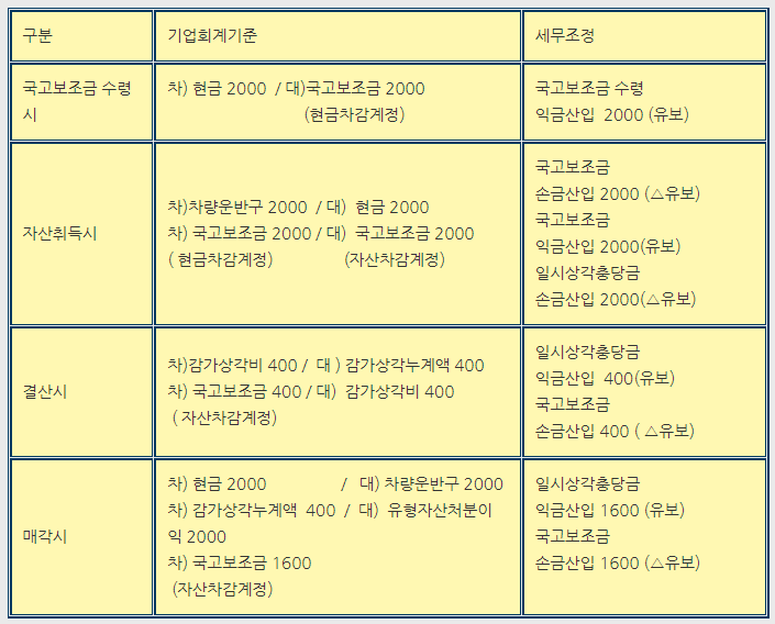 국가보조금 회계처리시 세무조정이 왜 저렇게 나오는지 궁금합니다.