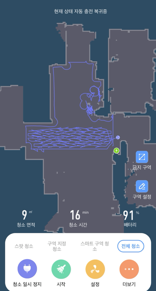 며칠 전부터 청소기를 돌리면 처음에는 정상적으로 잘 작동하다가 몇분 돌리다보면 오류? 현상이 일어납니다.