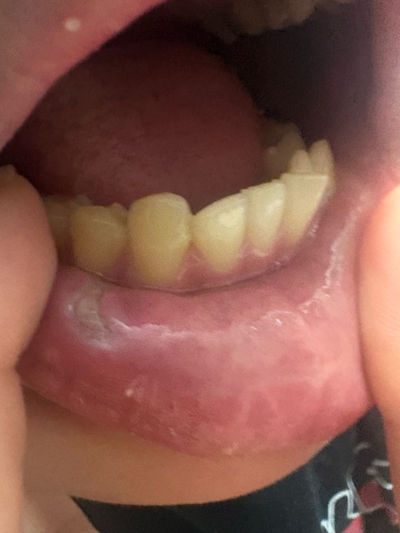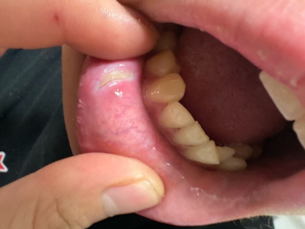 입술 점막부위에 상처가 있고 회복중으로 보입니다.