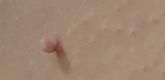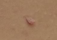 여드름 아니고 연성 섬유종(쥐젖)입니다. 사진상 병변은 표면이 매끈하고 피부색 또는 약간 분홍색을 띠며, 줄기처럼 돌출된 형태로 보입니다. 염증성 여드름보다는 양성 피부 병변에 가까운 양상입니다.