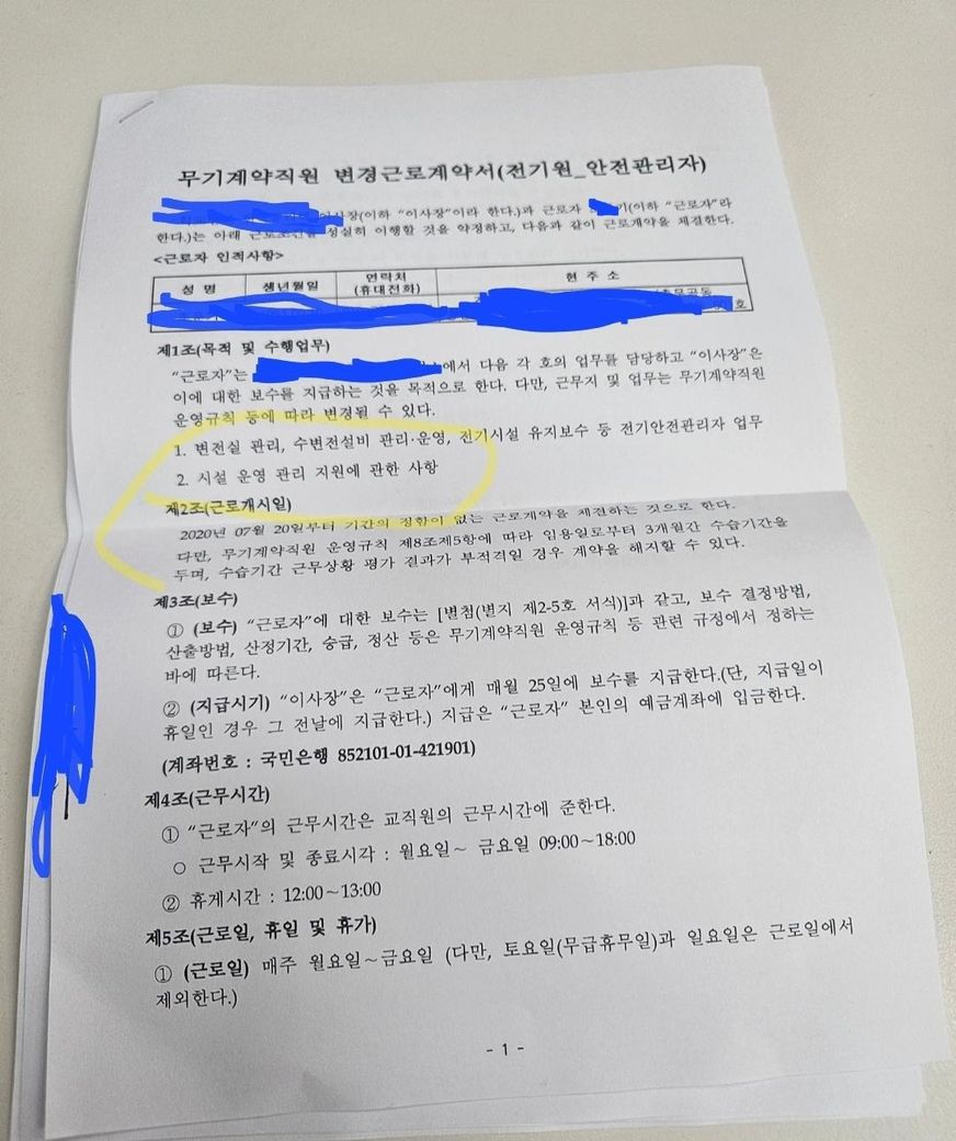 6.근로계약서, 직무기술서, 전기안전관리법 24조를 첨부하오니 참고 하시어 부당한 업무지시인지, 그리고 거부할 수 있는지를 알려주시길 부탁드립니다.