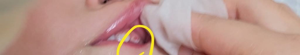아직 치아가 나오고 있는 과정으로 우선은 지켜보길 권하며, 억지로 문지르거나 자극은 하지 않는 것이 좋습니다.