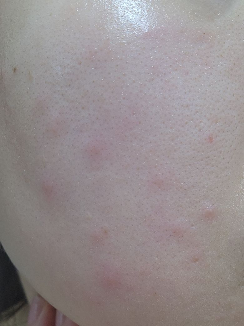 안녕하세요 금요일에 초밥먹고 그날밤 세안후 얼굴이 살짝 붉은 뽀루지가 올라오는것같았는데요..토요일되더니 여러개 더생기고 눈가도 붉게 여드름?같이 생겼어요 왜그럴까요