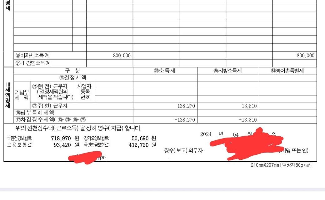 2024년 4월 퇴사. 원천징수영수증 및 퇴직금 정산서 수령