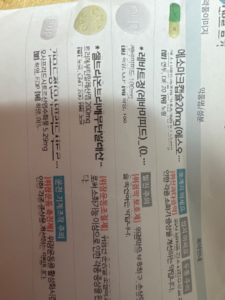 위염증상과 통증으로 위장약처방 받았고 접촉성 피부염으로 피부과약 처방받았습니다.