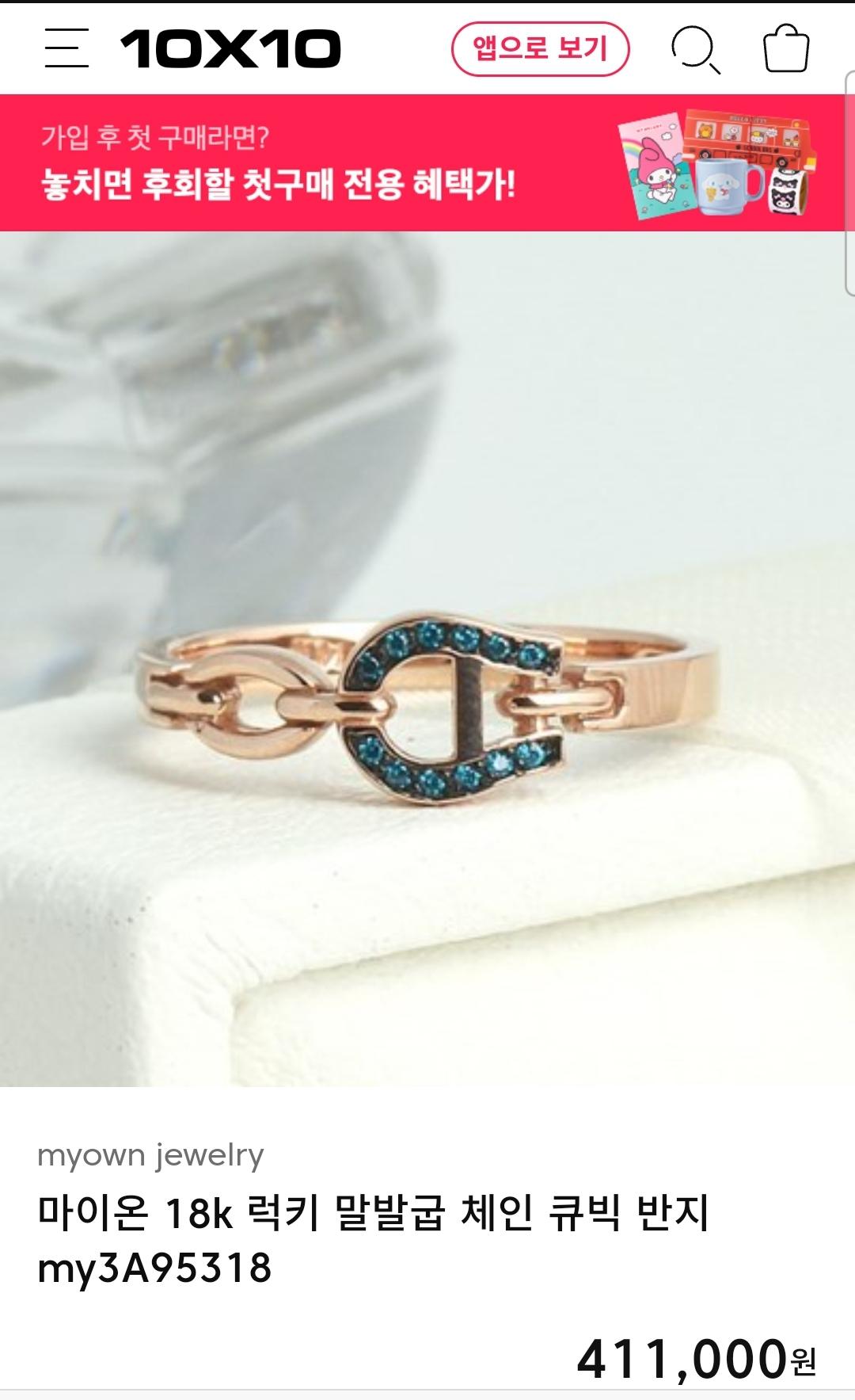마이온쥬얼리의 럭키 말발굽 체인 큐빅 반지입니다.