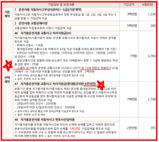 아래 보시면 스쿨존 관련 보장을 넣었습니다.