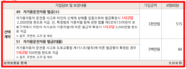 벌금이 나옵니다. 만원짜리 보험은 없습니다.