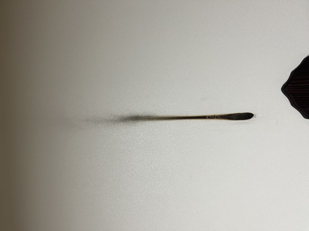 환기를 위해 초를 켜놓았다가, 초가 벽지 쪽으로 넘어지면서 벽지를 일부분 태우고 그을음이 생겼습니다