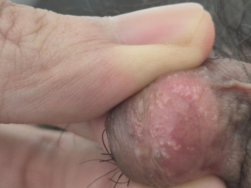 사진만 봐서는 피지샘이 융기되어있는 것처럼 보입니다. 포다이스반도 피지샘이기 때문에 가능성이 있겠습니다. 정확한 진단을 위해서는 비뇨기과 진료를 보셔야하겠습니다. 참고하시기 바랍니다.