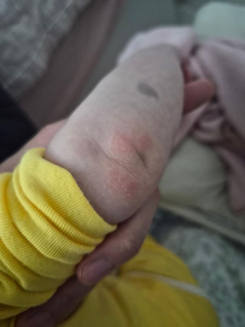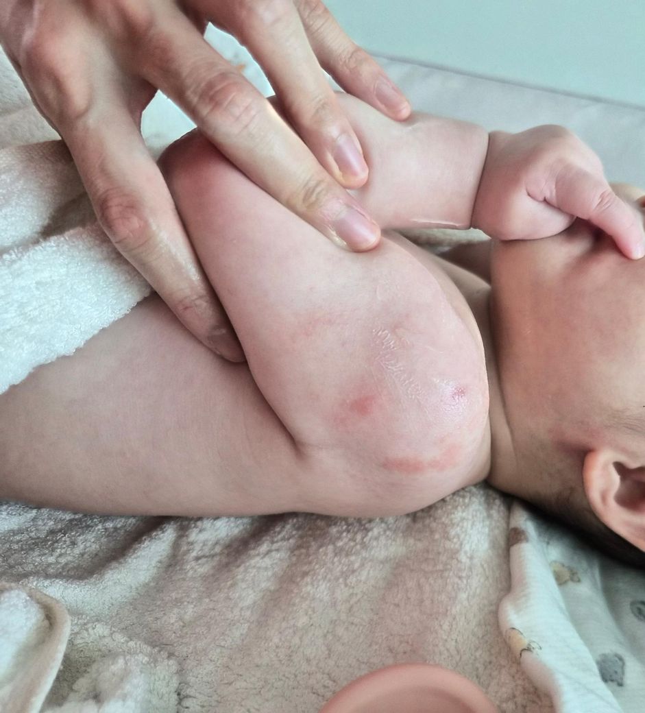 아기 구랫나루 팔꿈치 어깨쪽은 1주가 지나도 여전히 붉게 튼 것처럼 올라와있어요