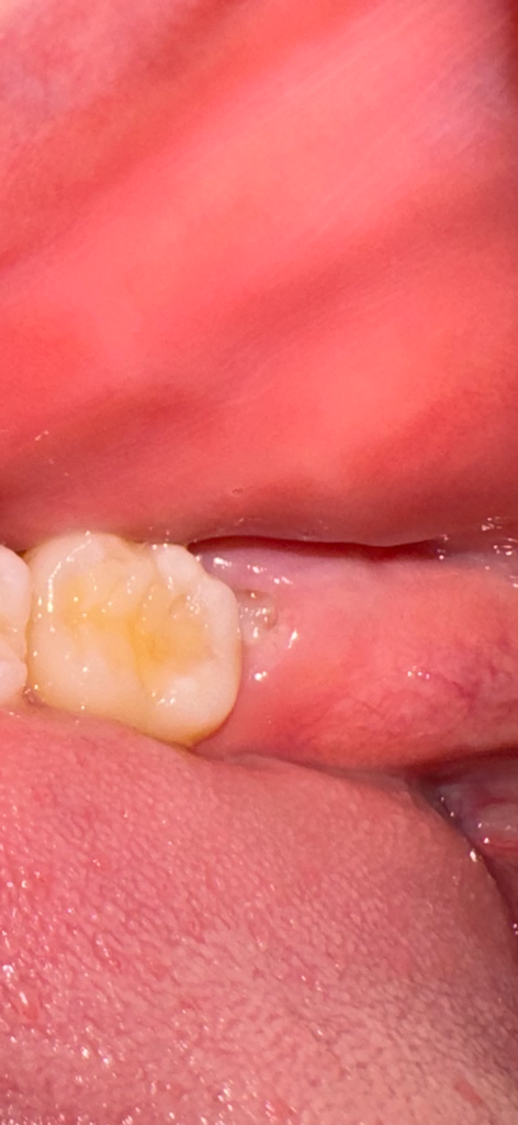 사진으로 봤을 경우에는 사랑이가 부분적으로 맹출하고 있는 것처럼 보입니다.
