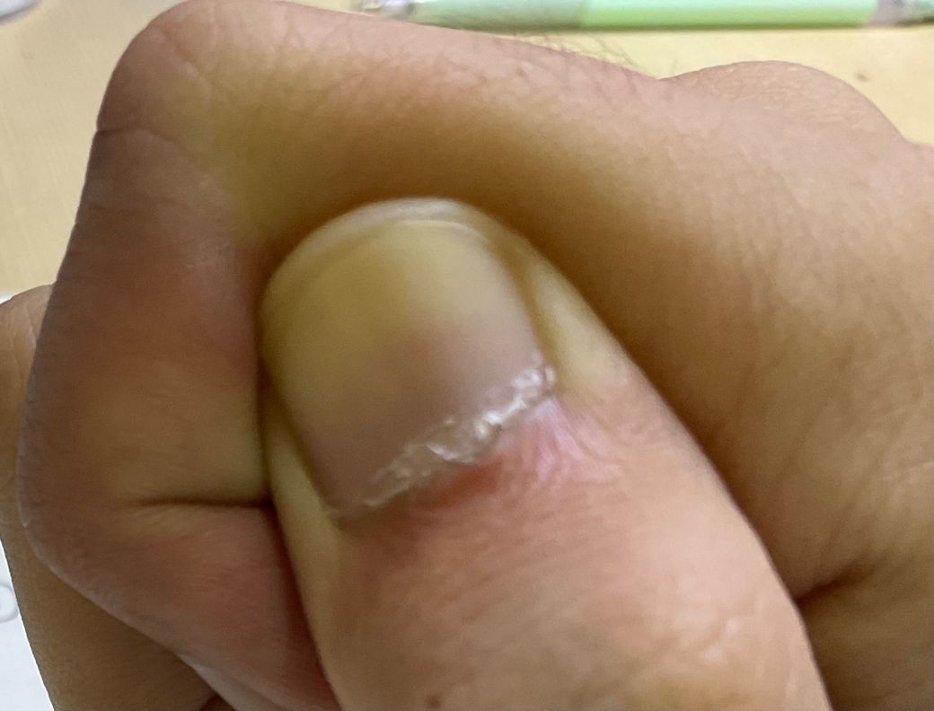 엄지 손톱 가운데 쪽에 살짝 어두운? 세로줄이 생겼어요. 검은 것 같진 않고 살짝 어두워 보이는데 흑색종 가능성이 있을까요?