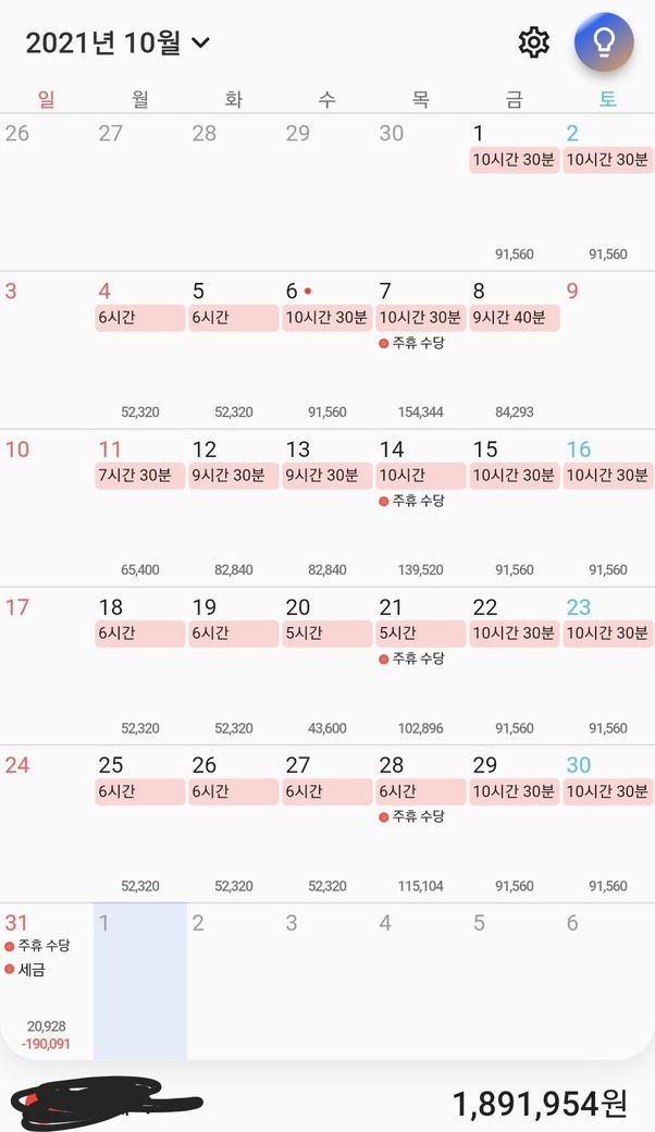 10월1일부터 31일까지 근무
