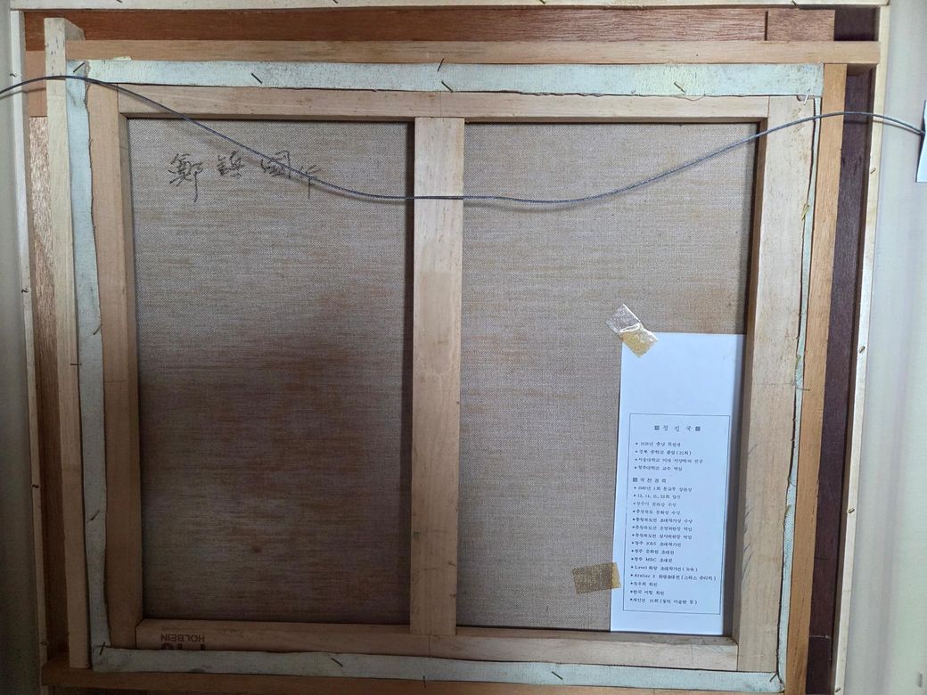 정진국 화백은 서울대학교 미술대학 출신으로 국전 우수상 수상 및 각종 미술대전 심사위원을 지낸 원로 작가이며, 주로 따뜻하고 사실적인 필치로 정물과 풍경을 담아내는 것이 특징입니다. 문의하신 작품은 가로세로 크기로 보아 약 10호 정도에 해당하며, 현재 미술 시장과 온라인 경매 등에서 대략 40만 원에서 60만 원 선의 시세를 형성하고 있는 것으로 보입니다. 특히 화백이 남긴 작품 중 풍경화는 정물화에 비해 상대적으로 귀하게 여겨지는 경향이 있어 소장 가치가 충분하다고 판단됩니다.