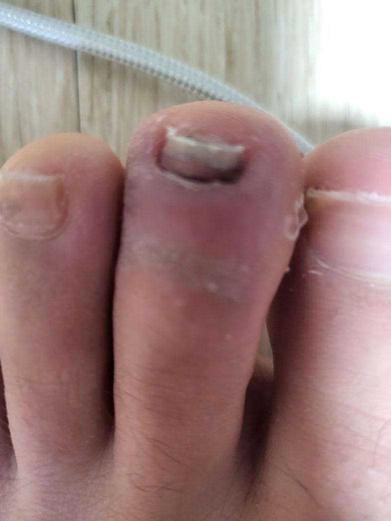 발톱아래에 피멍이 발생하였습니다.