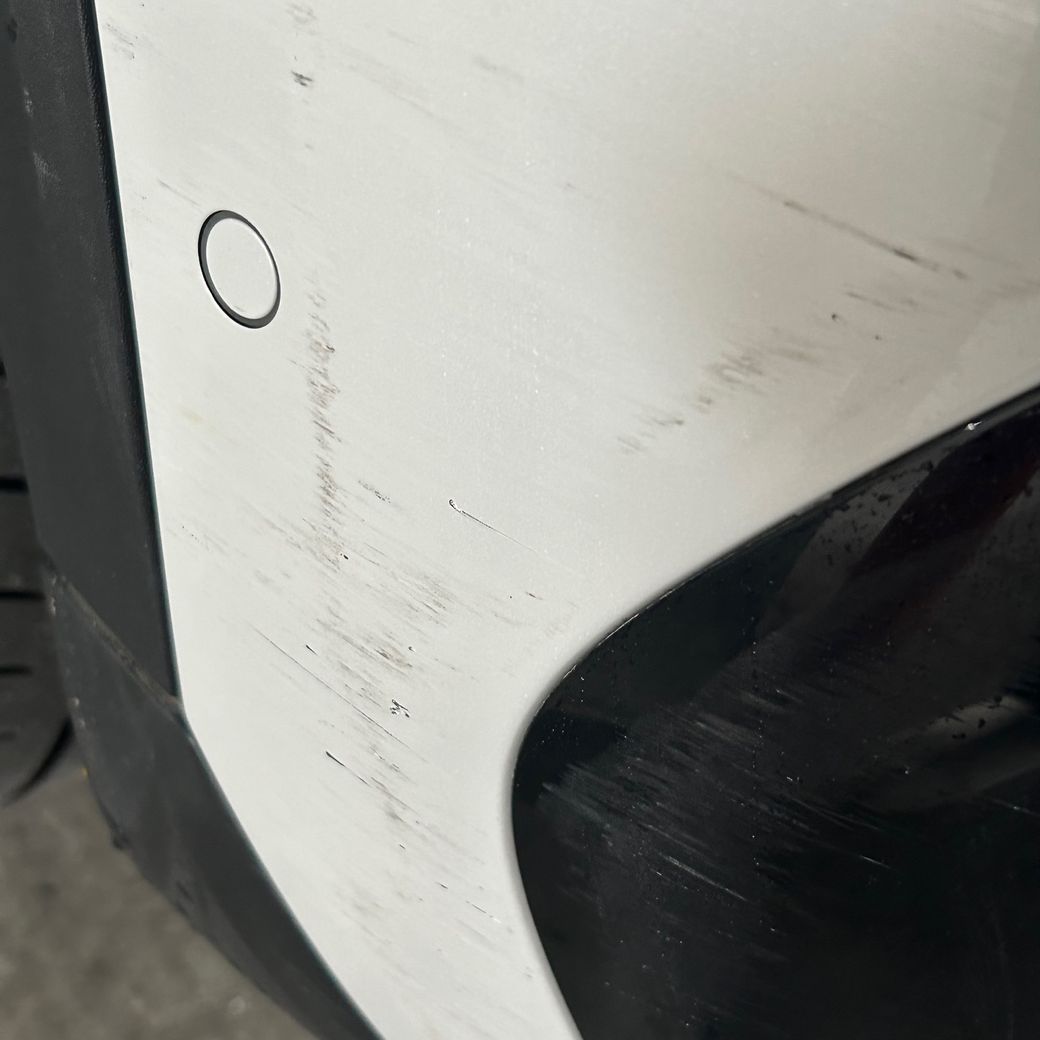 하지만 이번주 토요일인 10월 19일날 외출해서 주차를 하고 보니 조수석 편 범퍼가 긁혀 있습니다. (10월 6일날 찍힌 제 차 앞부분에서는 그런 적이 없었습니다.) 저번 주에는 화창해서 차를 확인하고 탔을 때는 아무런 자국이 없었는데 이번에 이렇게 긁힌 것 같더라구요..
