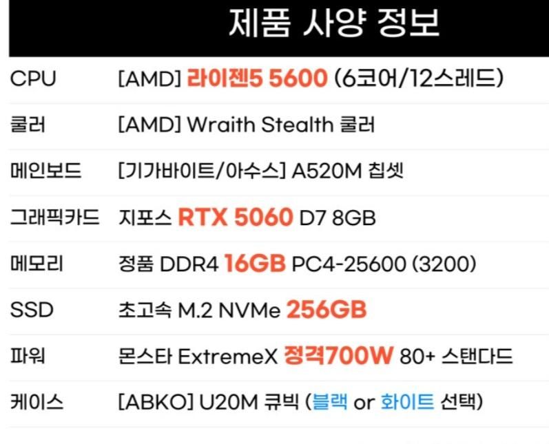→ AMD 라이젠 5 5600 제품도 충분합니다.