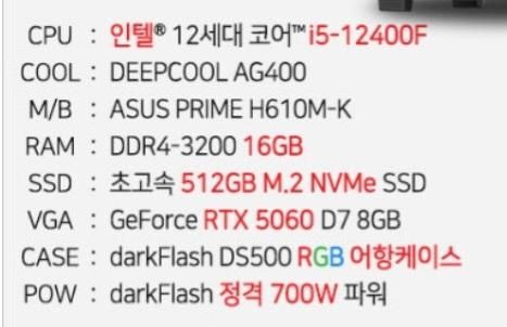 → 인텔 i5-12400F + 512GB SSD 제품 추천합니다.