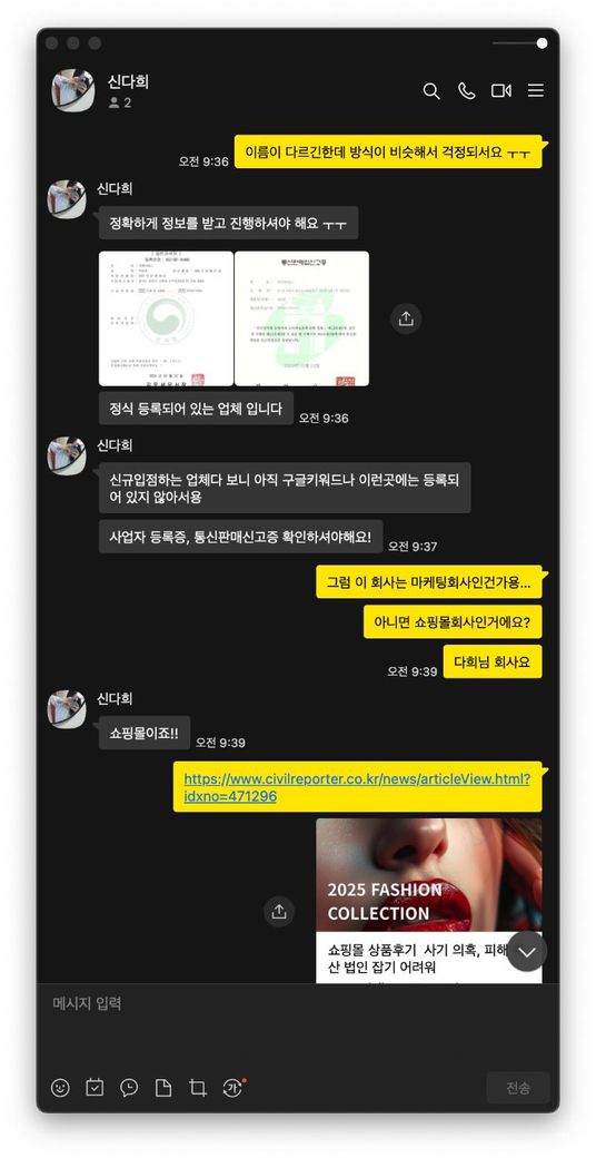 제가 사기아니냐고 여러가지 사업자관련 질문을 했더니