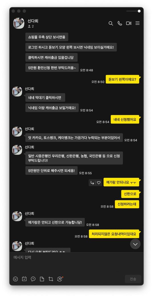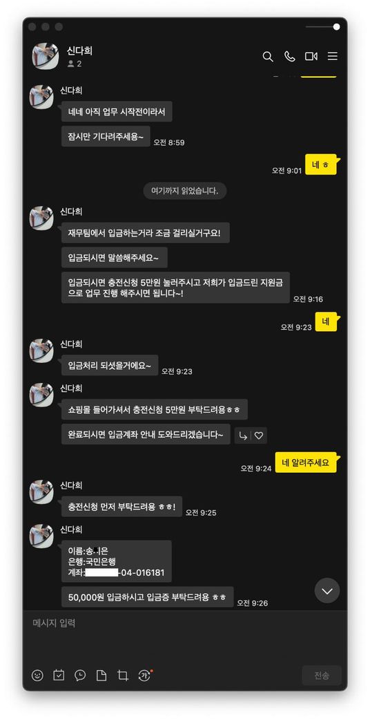 사기치려는 사람이 있는데 저한테 5만원을 충전하라고 입금했어요