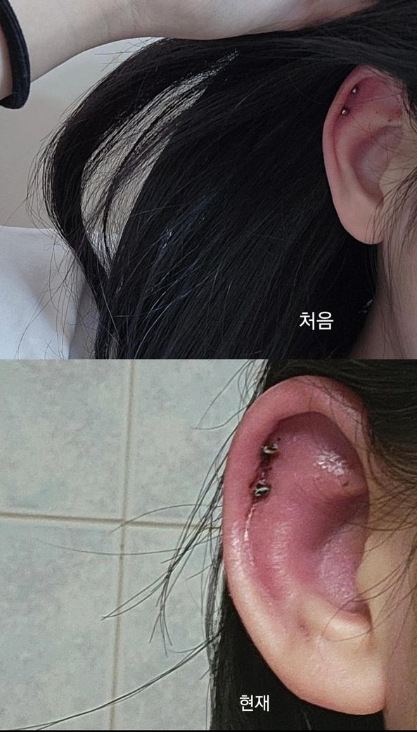 현재 피어싱으로 염증이 생겨서 귀가 부은 경우에는 피부과에서 진료를 받고 조치를 취하길 권합니다.