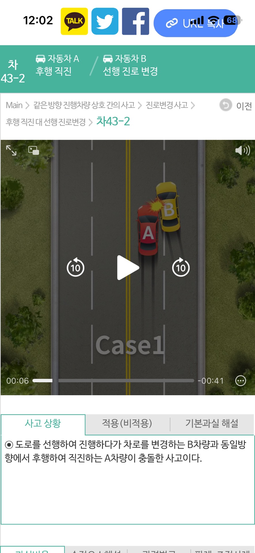 상대방의 방향 지시등과 진행 방향 등으로 차선 변경이 예측되었는지, 너무 근거리에서 들어왔기에