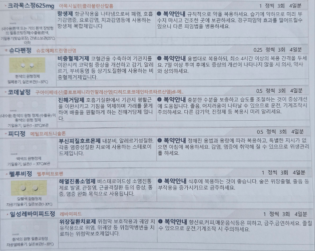 현재 목감기, 코감기로 인해 아래 사진에 첨부된 약을 복용하고 있습니다. 평소에는 5시간 30분 정도의 간격을 두고 복용하는데 오늘 늦잠을 자는 바람에 오후 3시에 아침 약을 먹어서요. 점심 약과 저녁 약을 마저 복용해야 하는데 최소 몇 시간의 간격을 두고 먹는 게 좋을까요? 처방전에 나와있긴 하지만 혹시 몰라 질문해봅니다.