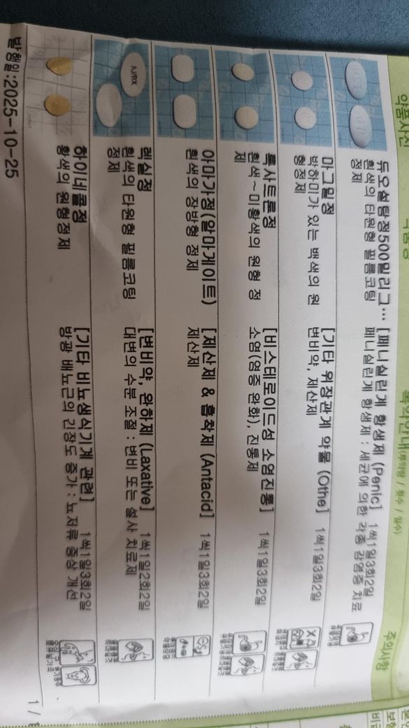 얘기하니 약을 조절해줬는데 마그밀이 한알반에서