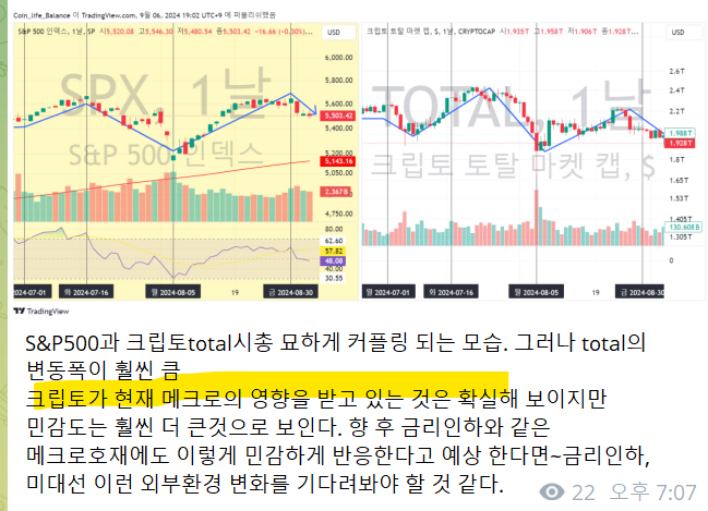 최근에 비트코인이 나스닥과 커플링 되는 경향이 뚜렷하다는 것은 그만큼 메크로(경제)현황에 비트코인이 민감하게 반응하고 있다는 반증 입니다. ^^